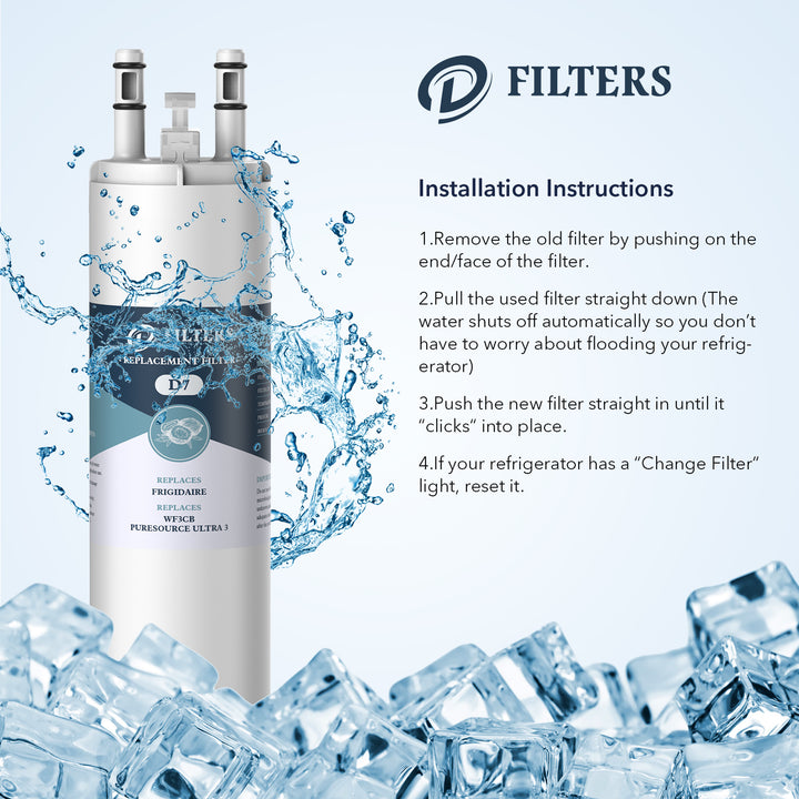 The Dfilters for Frigidaire PureSource3 Filter (WF3CB) is used in refrigerators by Frigidaire and others.  The WF3CB filter creates better tasting water for drinking and making beverages as well as clean, clearer, healthy ice.
