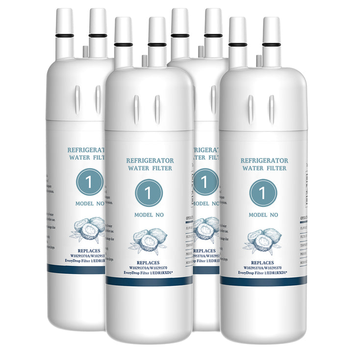 This(D1) refrigerator water filter 1 could reduce 24 impurities in water as well as other harmful contaminants. The fridge filter is compatible with Everydrop Water Filter 1, W10295370A, EDR1RXD1 Water Filter and 9081 Water Filter. We recommend to replace the filter every 6 months to ensure the filtration performance.